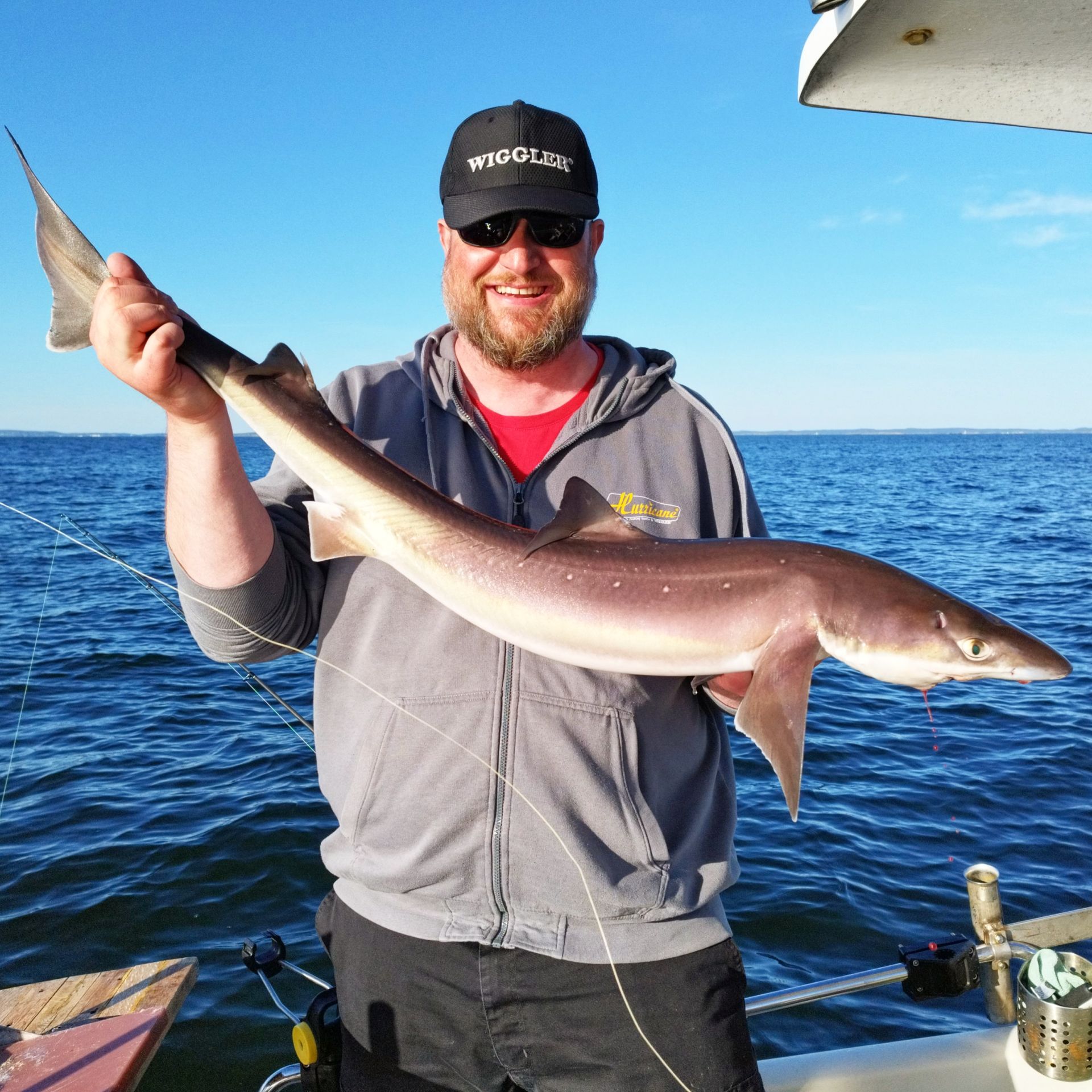 We bait the spiny dogfish with fish pieces and use barbless hooks to ensure a gentle release after the catch. Of course, we take an awesome photo before releasing the shark back into its rightful element!