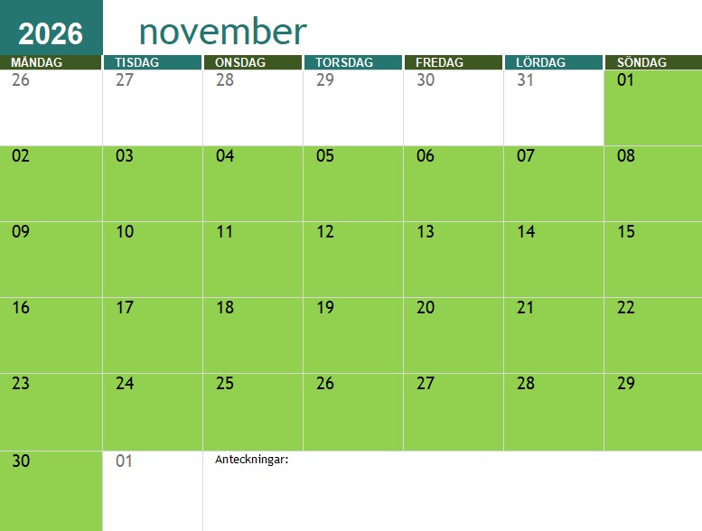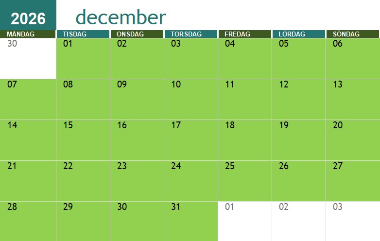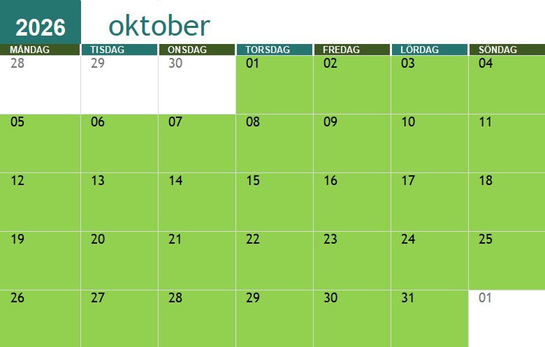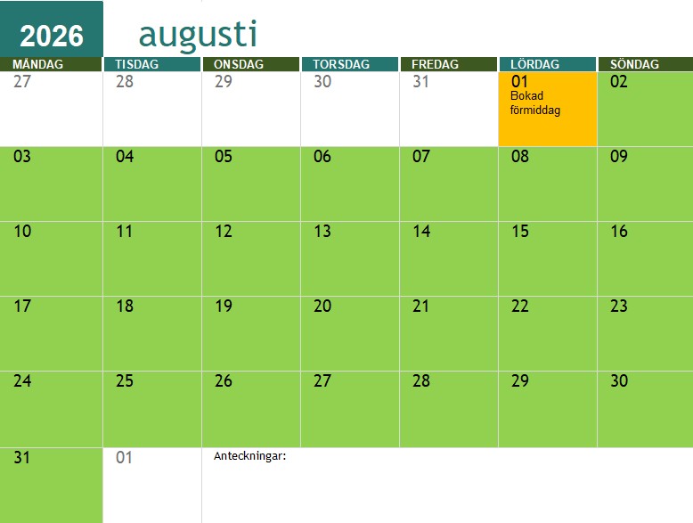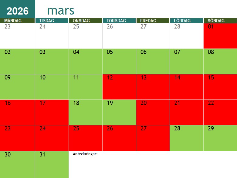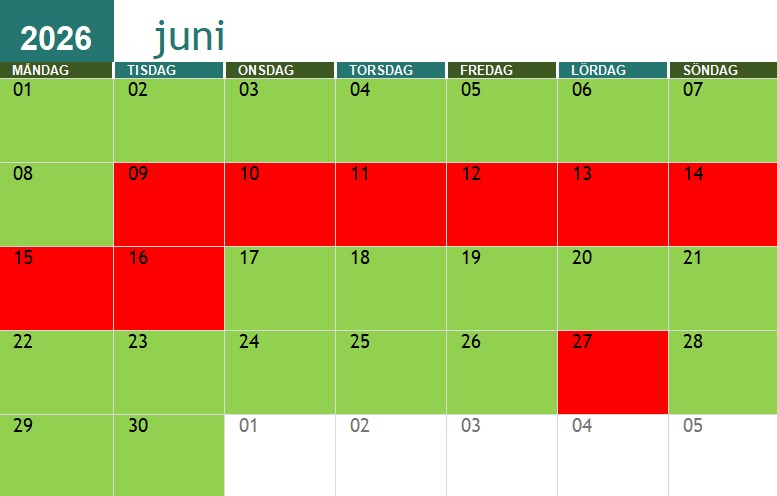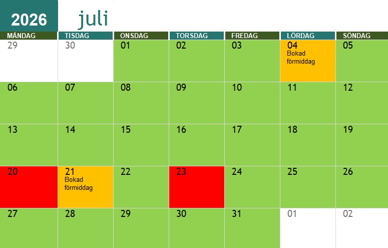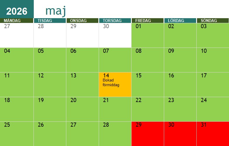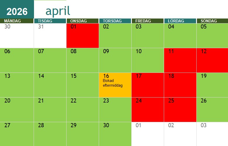 Röda dagar är jag redan upptagen, gröna är jag fri.